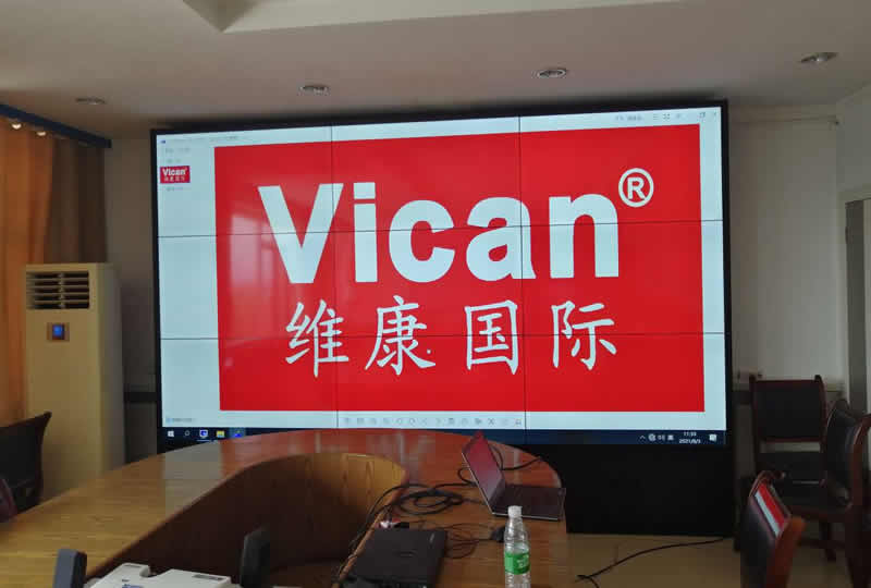 本案例中,維康國際為廣州華景軟件園某軟件公司提供一套會議大屏,采用3x3拼接、55寸液晶拼接屏,屏體為LG3.5mm原裝面板,大屏幕顯示清晰,拼縫較小。