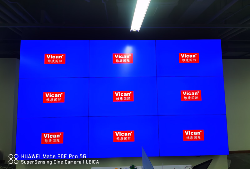 本案中,維康國際為北京中關(guān)村聯(lián)盟大夏某企業(yè)提供一套辦公室顯示大屏,采用3x3拼接的55寸液晶拼接屏,屏體采用LG1.8mm超窄邊液晶面板,畫面清晰亮麗,有著很好的一體化顯示效果。