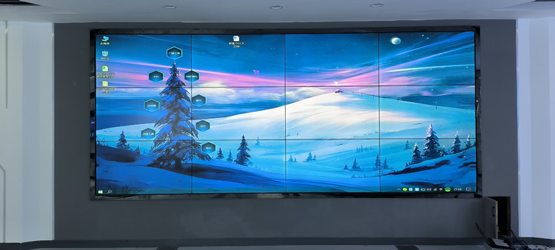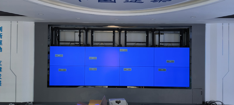 本案例中,維康國際為中建八局安圖縣某項目部提高一套會議室顯示大屏,采用3*4拼接、3.5mm拼縫的55寸拼接屏,壁掛式安裝,更顯美觀大氣。