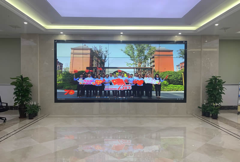 這套大屏采用4x5、55寸液晶拼接屏,雙邊拼縫為3.5mm,主要用來(lái)發(fā)布視頻或信息公告。